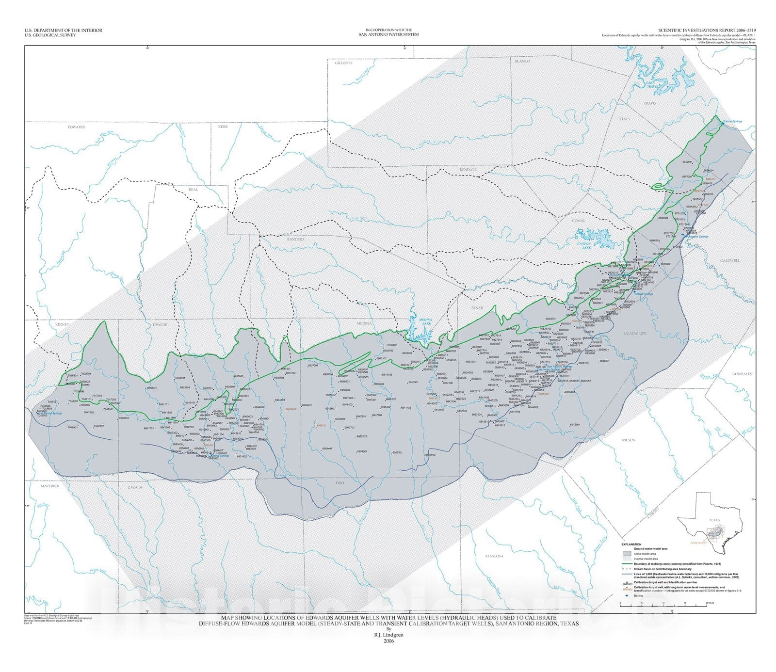 Map : Diffuse-flow conceptualization and simulation of the Edwards aquifer, San Antonio region, Texas, 2007 Cartography Wall Art :