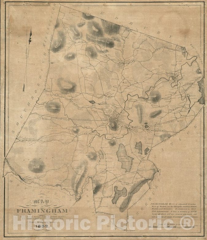 Historical Map, Map of Framingham : from Actual surveys Taken by Jonas Clayes & Warren Nixon in The Years 1830 and 1831, Vintage Wall Art