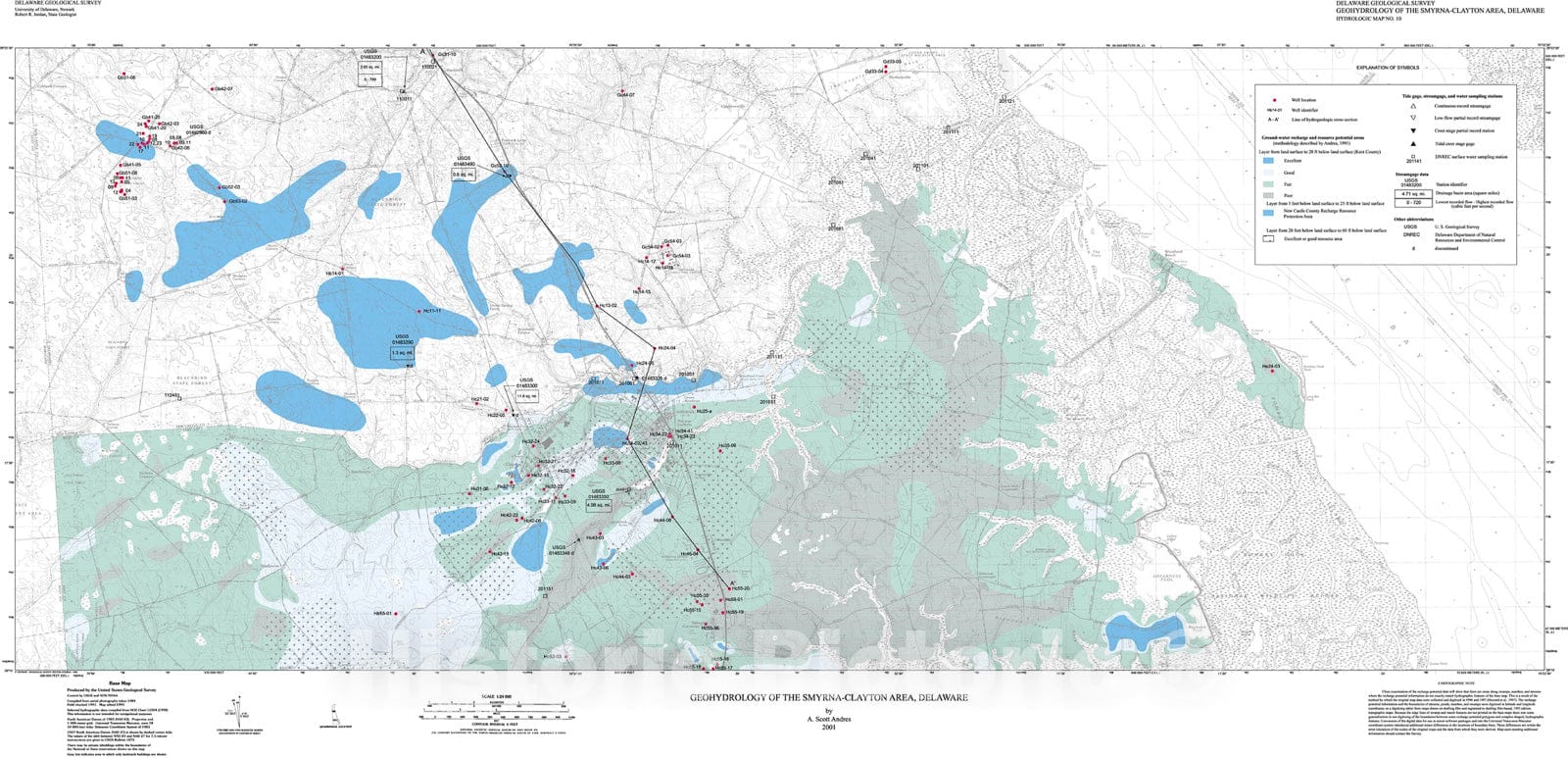 Map : Geohydrology of the Smyrna-Clayton area, Delaware, 2001 Cartography Wall Art :