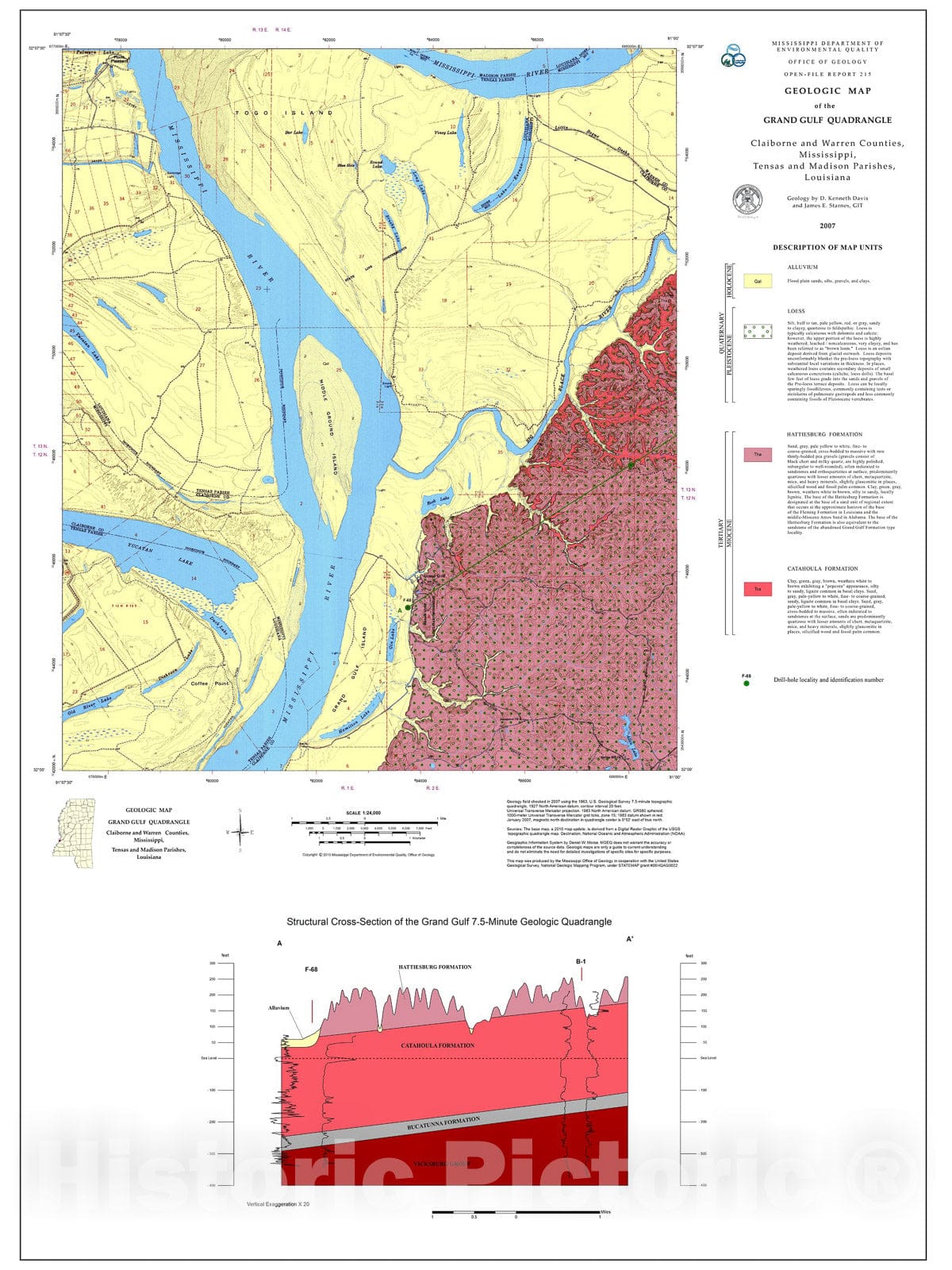 Map : Geologic map of the Grand Gulf quadrangle; Claiborne and Warren Counties, Mississippi, Tensas and Madison parishes, Louisiana, 2007 Cartography Wall Art :