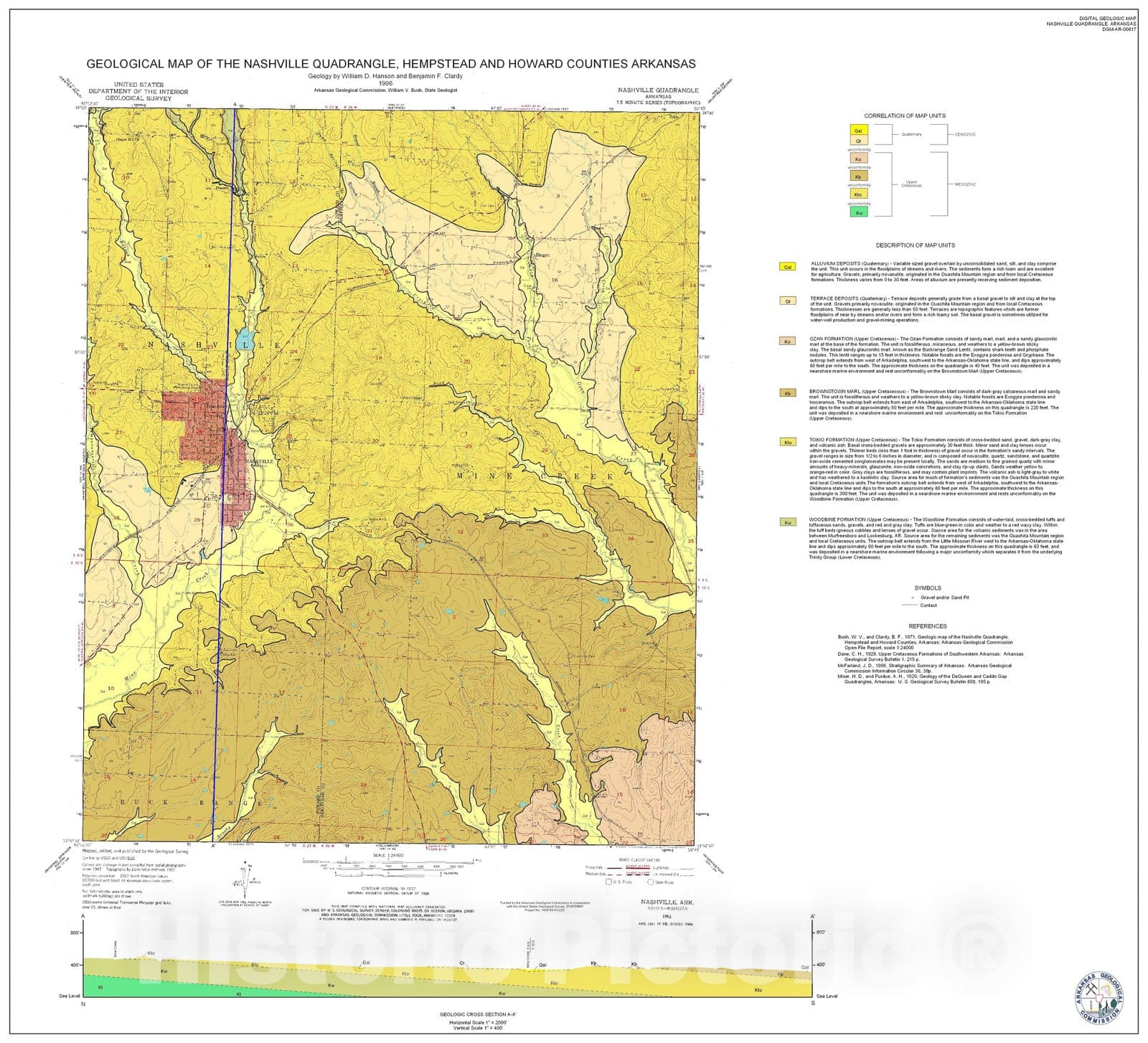 Map : Geologic Map of the Nashville Quadrangle, Hempstead and Howard Counties, Arkansas, 2001 Cartography Wall Art :