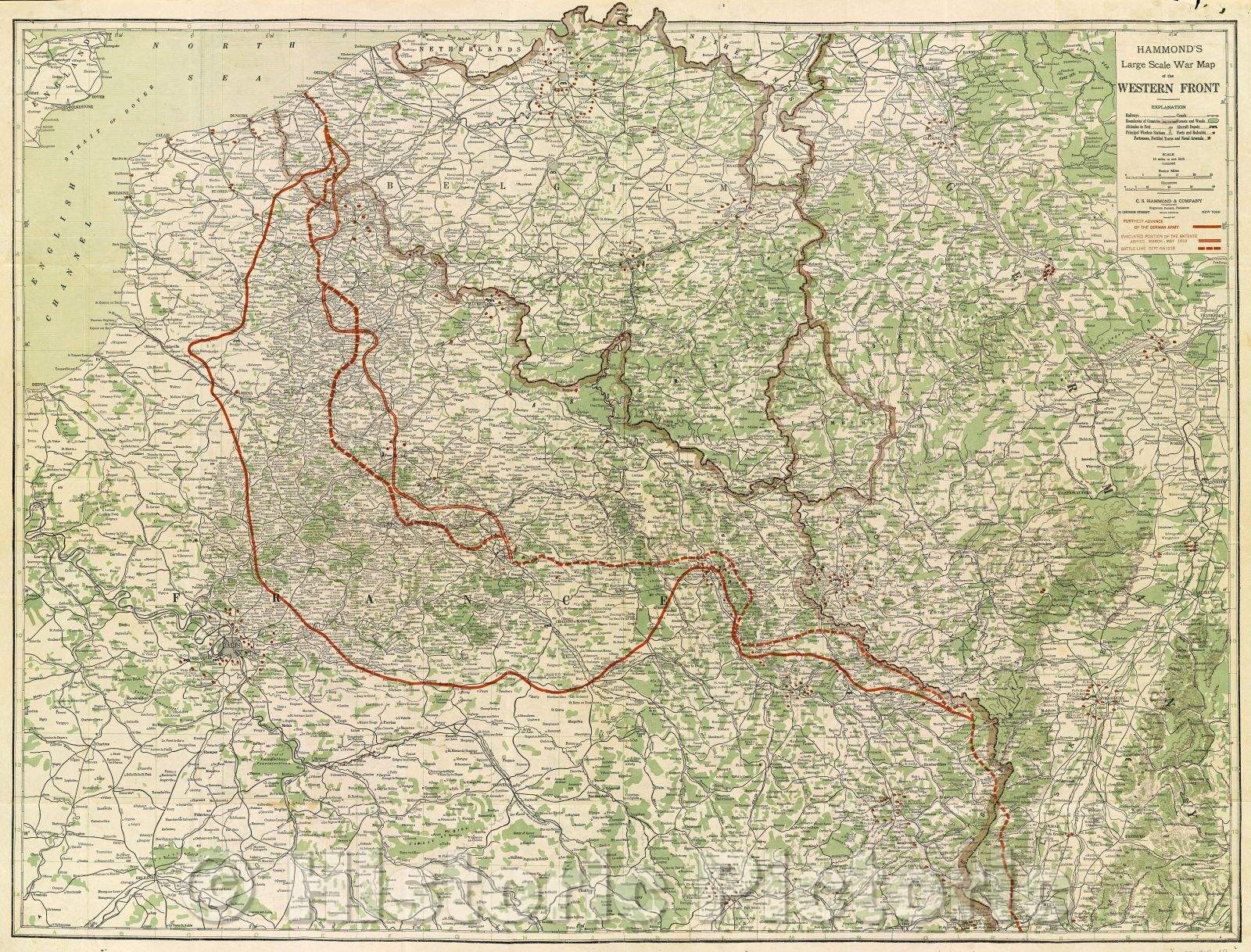 Historic Map : Hammond's Large Scale War Map of the Western Front, 1918 , Vintage Wall Art