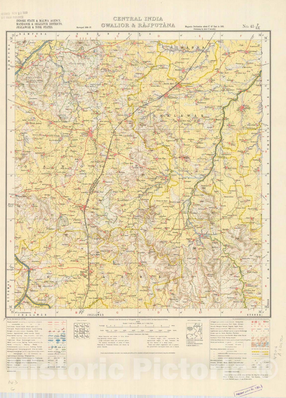 Historic Map : Indore State & Malwa Agency, Mandasor & Shajapur Districts, Jhalawar & Tonk States, Central India, Gwalior & Rajputana, No. 45 P/S.E. 1938, India and adjacent countries