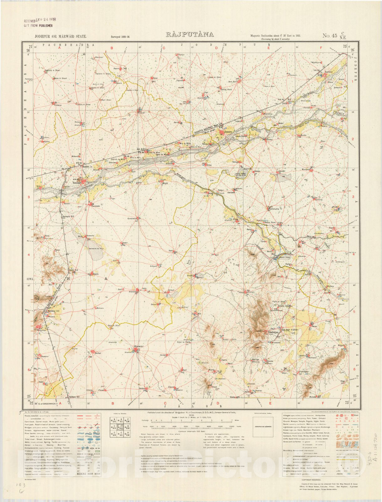 Map : Jodhpur (or Marwar) State, Rajputana, No. 45 C/N.E. 1936, India and adjacent countries, Antique Vintage Reproduction