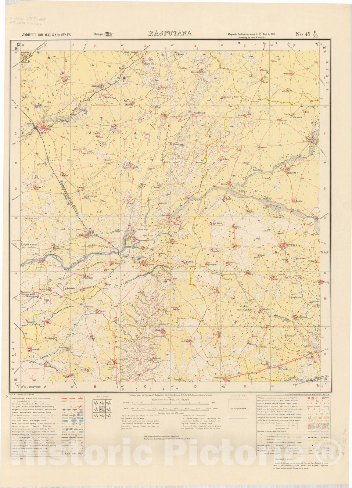 • .Map : Jodhpur (or Marwar) State, Rajputana, No. 45 F/S.E. 1933, India and adjacent countries, Antique Vintage Reproduction