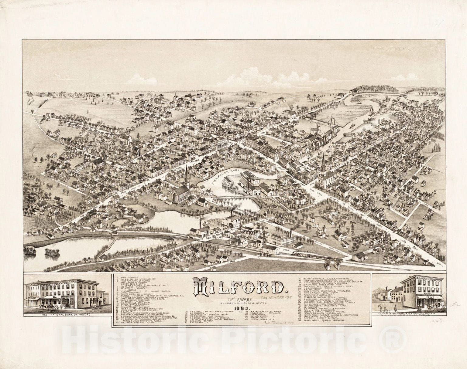 Historical Map, Milford, Delaware : 1885, Vintage Wall Art