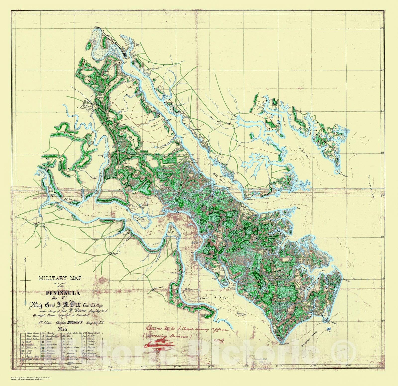 Historic Nautical Map - Military Map of the Peninsula, VA, Civil War Historic Nautical Map - Vintage Wall Art