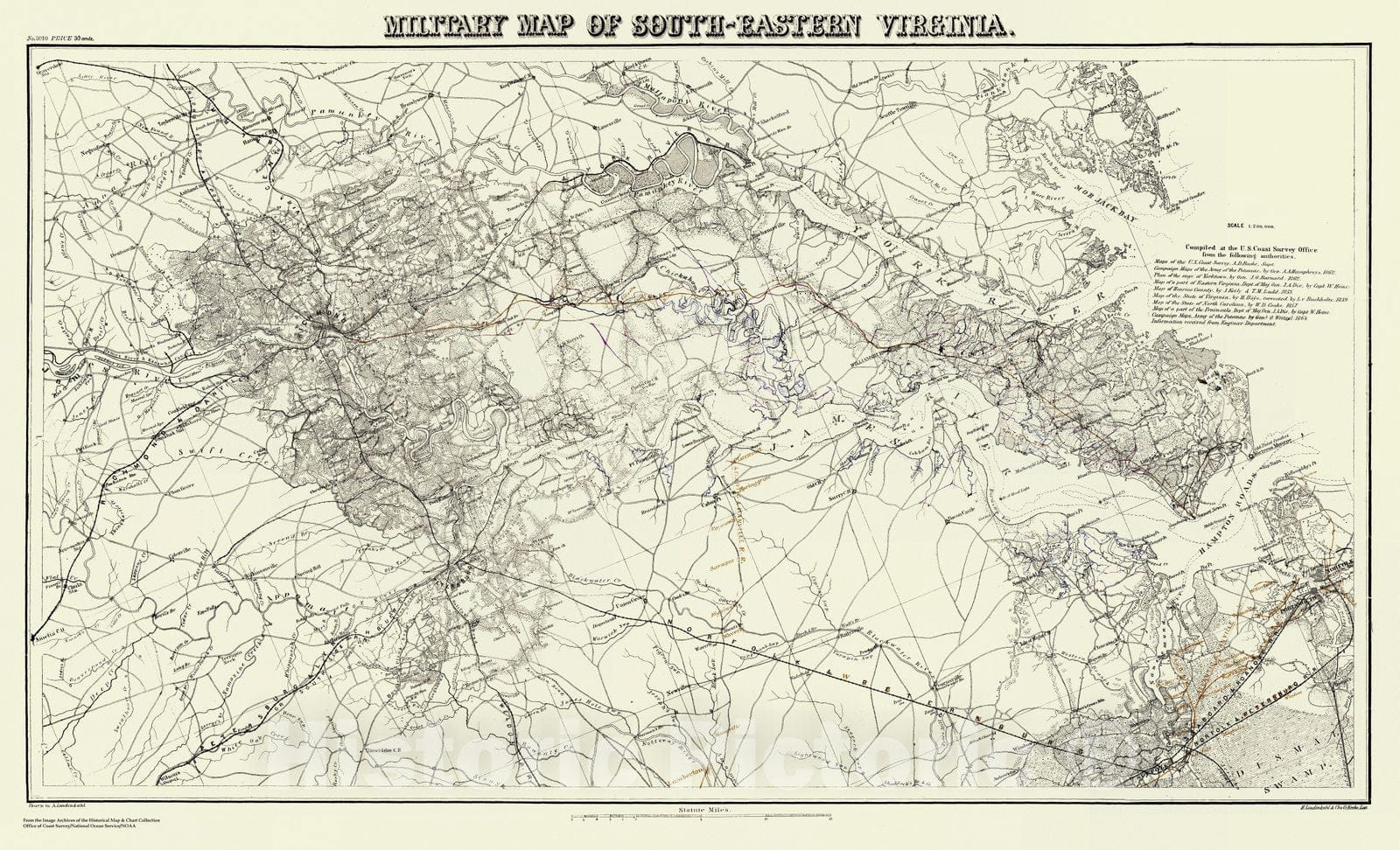 Historic Nautical Map - Military Map Of South-Eastern Virginia, VA, 1864 Civil War Historic Nautical Map - Vintage Wall Art