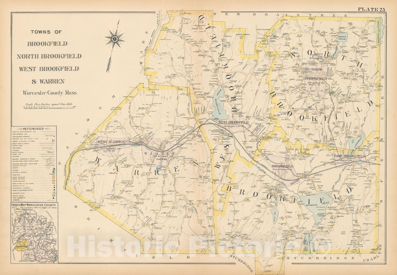 New Topog. Atlas of the County of Worcester, Brookfield & North Brookfield & Warren & West Brookfield 1898 Plate 025