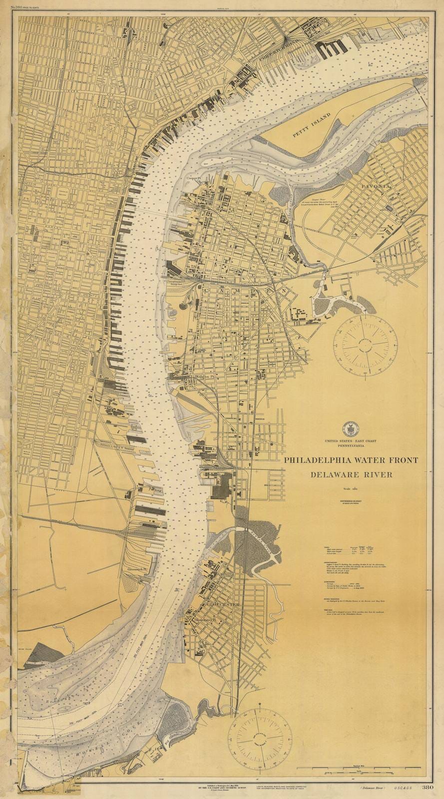 Historic Nautical Map - Philadephia Water Front, Delaware River, 1924 NOAA Chart - Pennsylvania (PA) - Vintage Wall Art