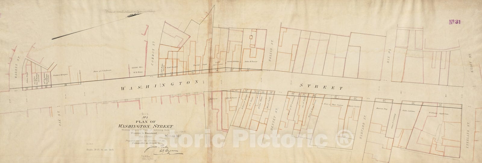 Historical Map, Plan of Washington Street showing proposed lines of widening from Warren to Kneeland : Oct. 1st 1860, Vintage Wall Art