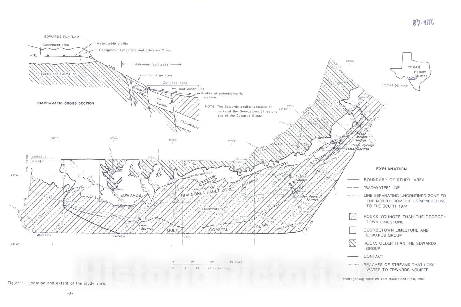 Map : Relation of water chemistry of the Edwards aquifer to hydrogeology and land use, San Antonio region, Texas, 1987 Cartography Wall Art :