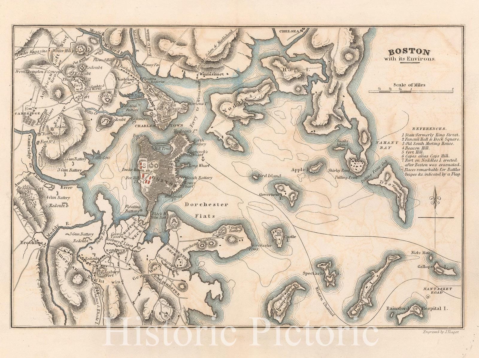 Historic Map : Revolutionary War Maps of Boston and Massachusetts, Boston 1770 , Vintage Wall Art