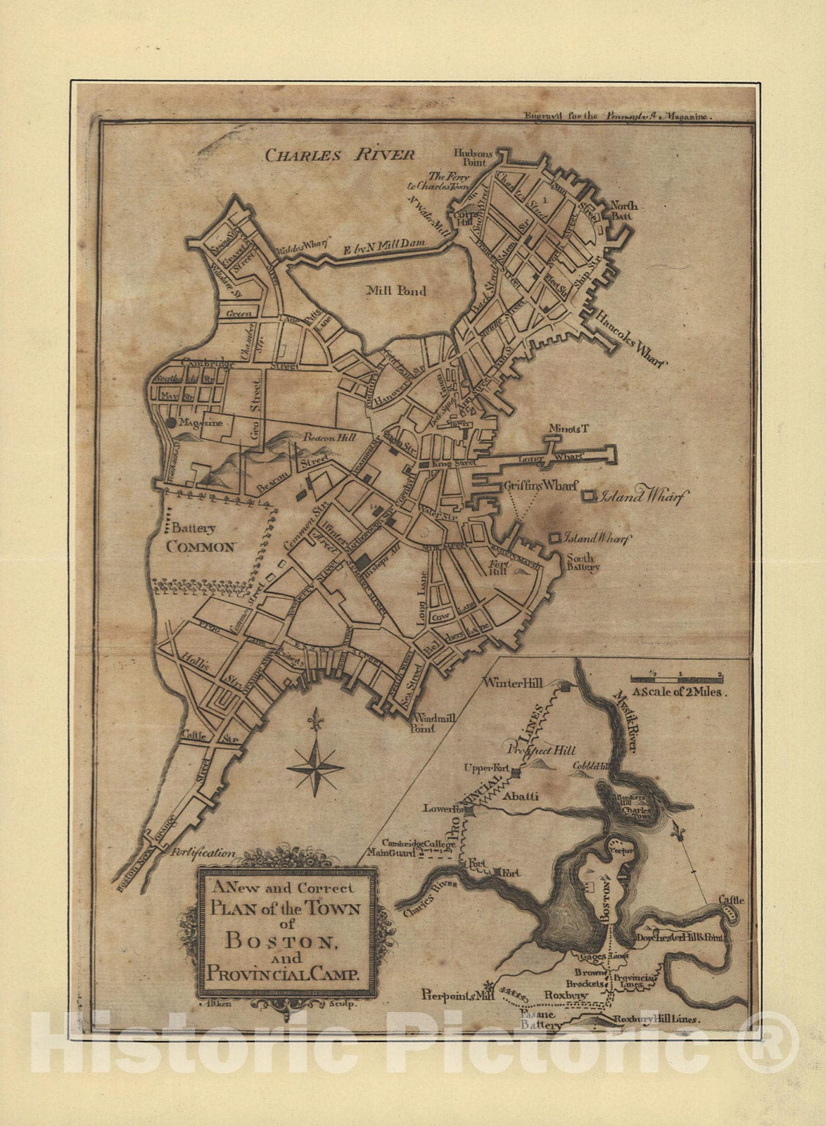 Historic Map : Revolutionary War Maps of Boston and Massachusetts 1775 , v5, Vintage Wall Art