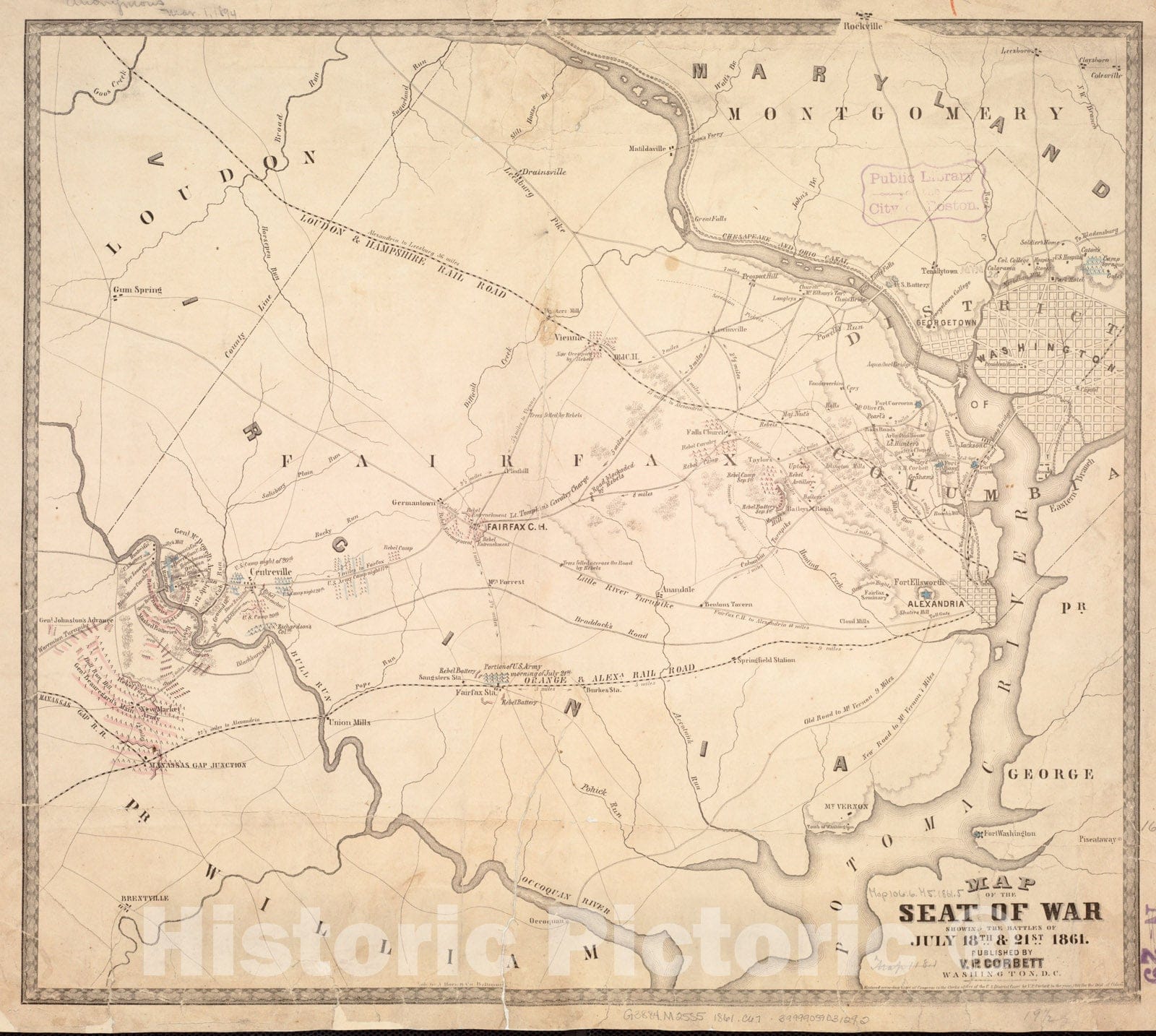 Map of the seat of war showing the battles of July 18th & 21st 1861