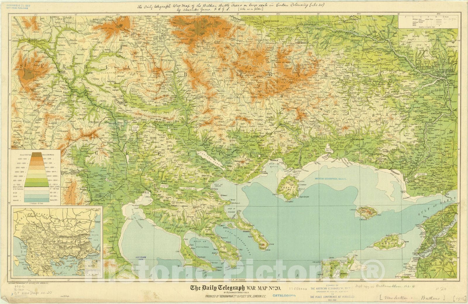 Map : Southern Balkan Peninsula 1916, The Daily telegraph war map no. 20 : [of the southern Balkan Peninsula] , Antique Vintage Reproduction
