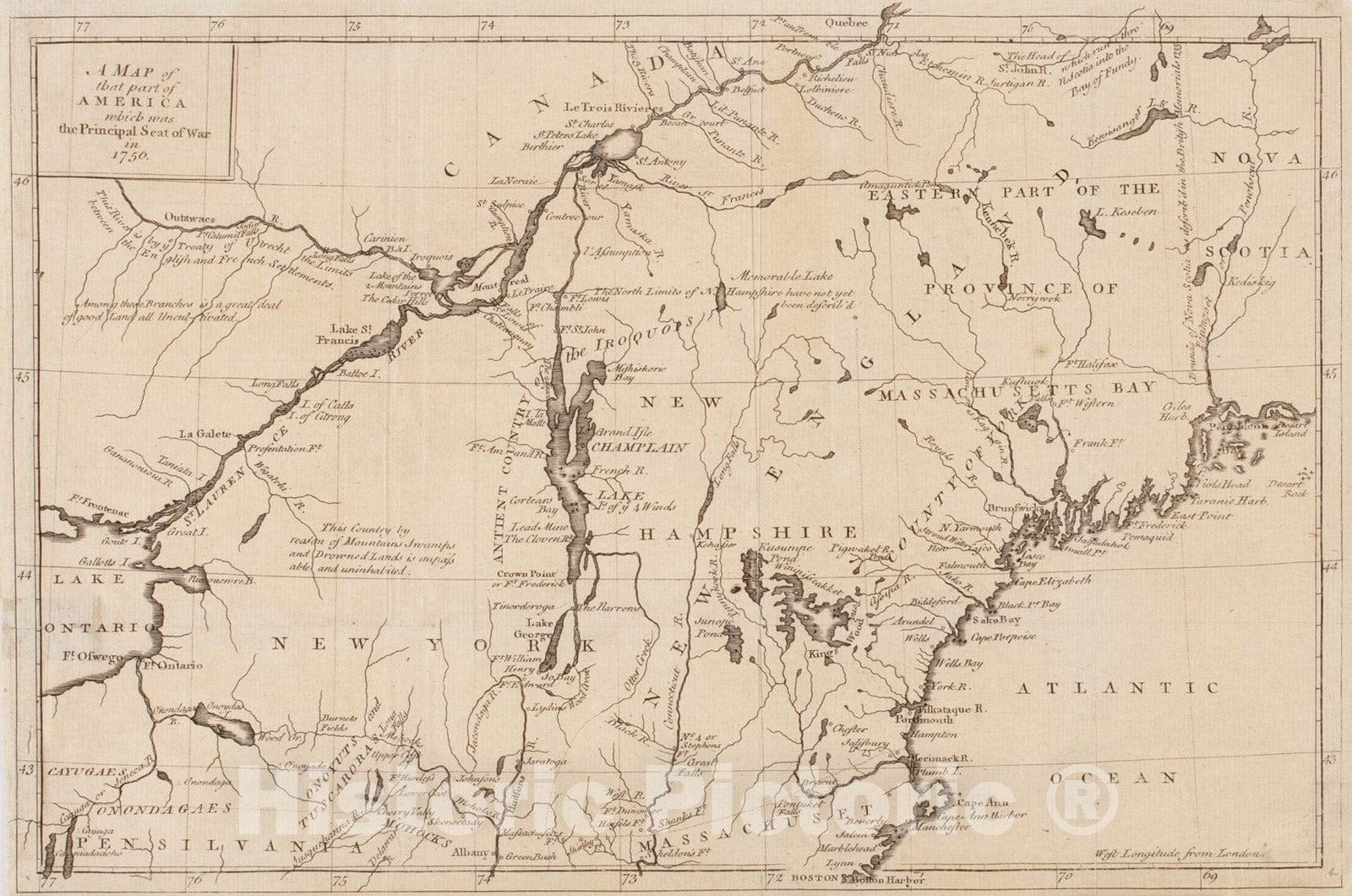 Historical Map, A Map of That Part of America which was The Principal seat of war in 1756, Vintage Wall Art
