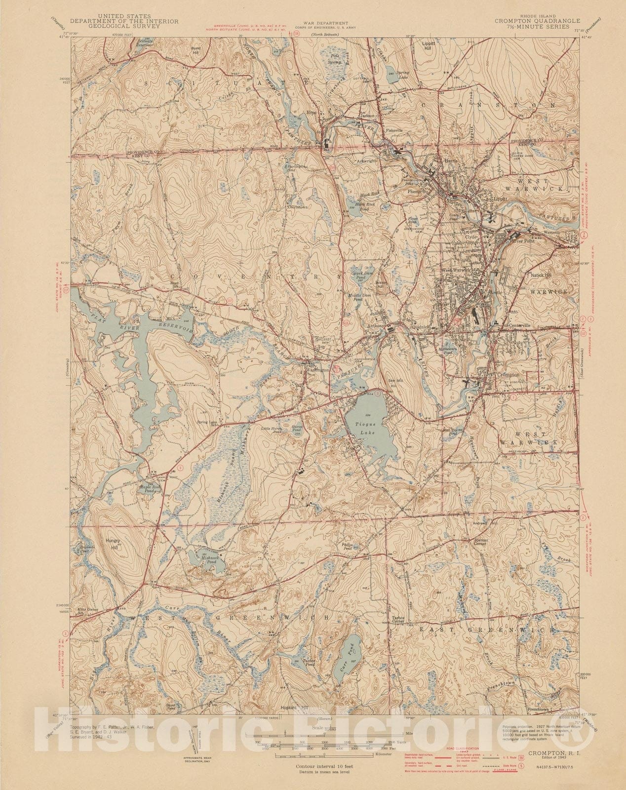 Historic Map : USGS 7.5 Minute Sheets and Quadrangles, Coventry & Warwick 1943 Topographic Map , Vintage Wall Art