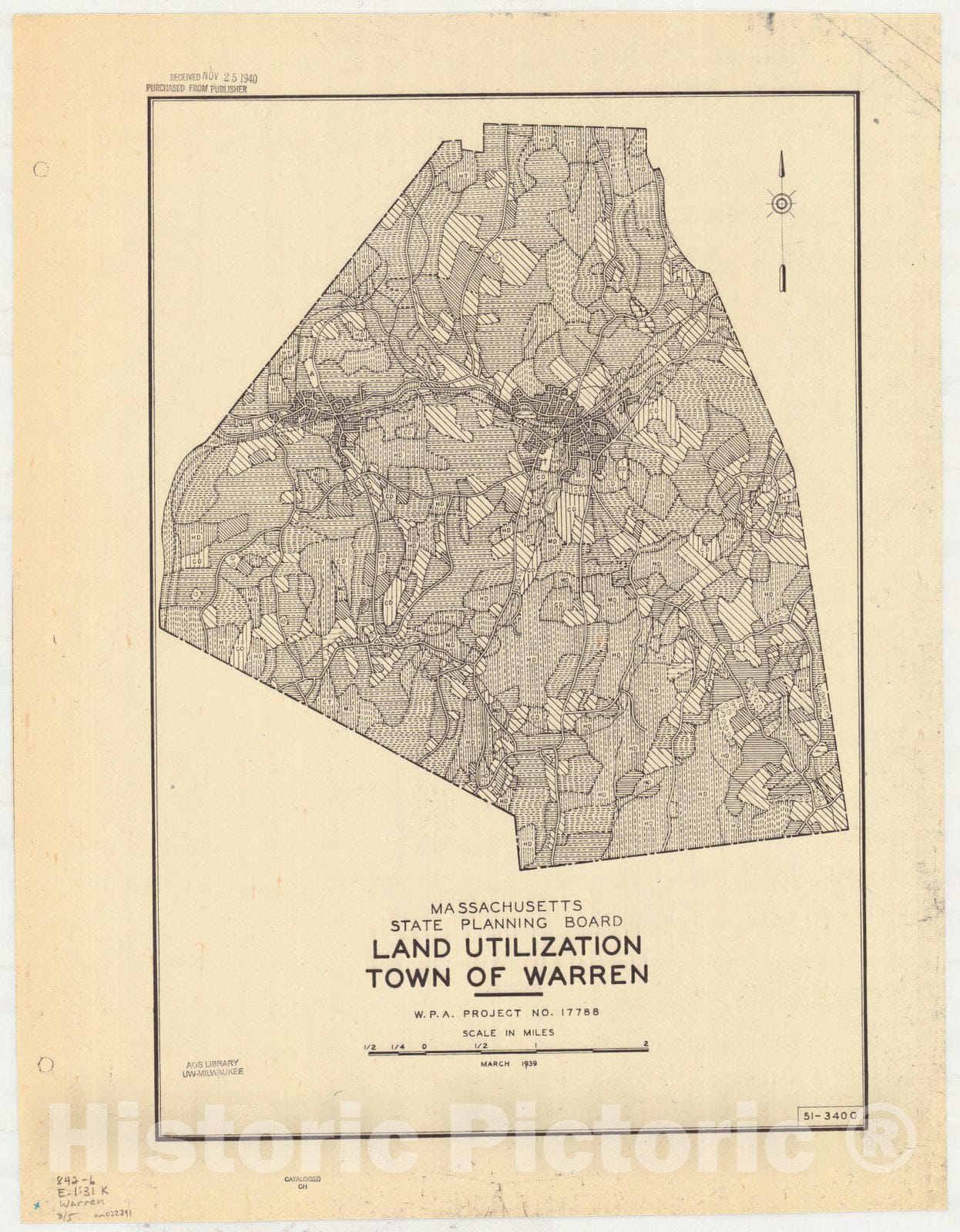Map : Warren, Massachusetts 1939 2, Town of Warren , Antique Vintage Reproduction