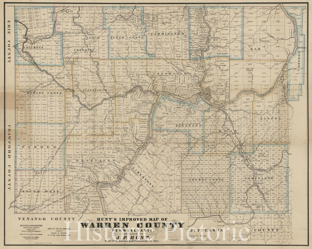 Historic 1865 Map - Hunt's Improved map of Warren County, Pennsylvania.