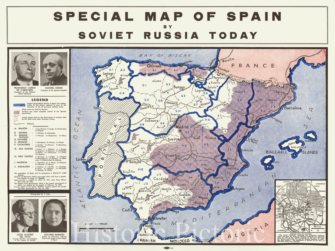 Historic Map : (Spanish Civil War - American Communist Viewpoint) Special Map of Spain by Soviet Russia Today, c1937, Friends of the Soviet Union, Vintage Wall Art