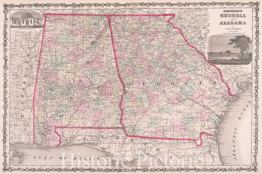 Historic Map : Johnson's Georgia and Alabama, 1861, Benjamin P Ward, Vintage Wall Art