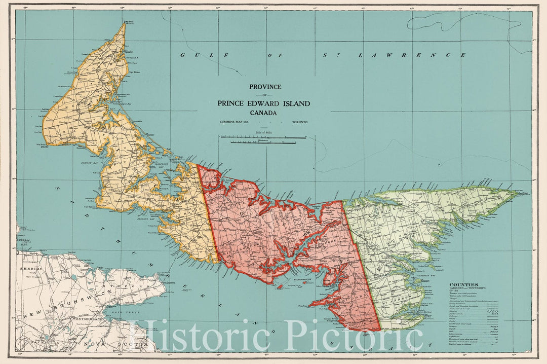 Historic Map : Province of Prince Edward Island, Canada., 1925, Vintage Wall Art