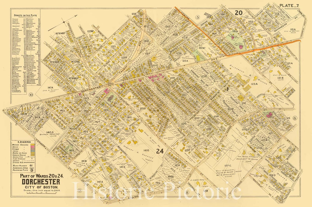 Historic Wall Map : City Atlas - 1899 7. Wards 20, 24 Dorchester. - Vintage Wall Art