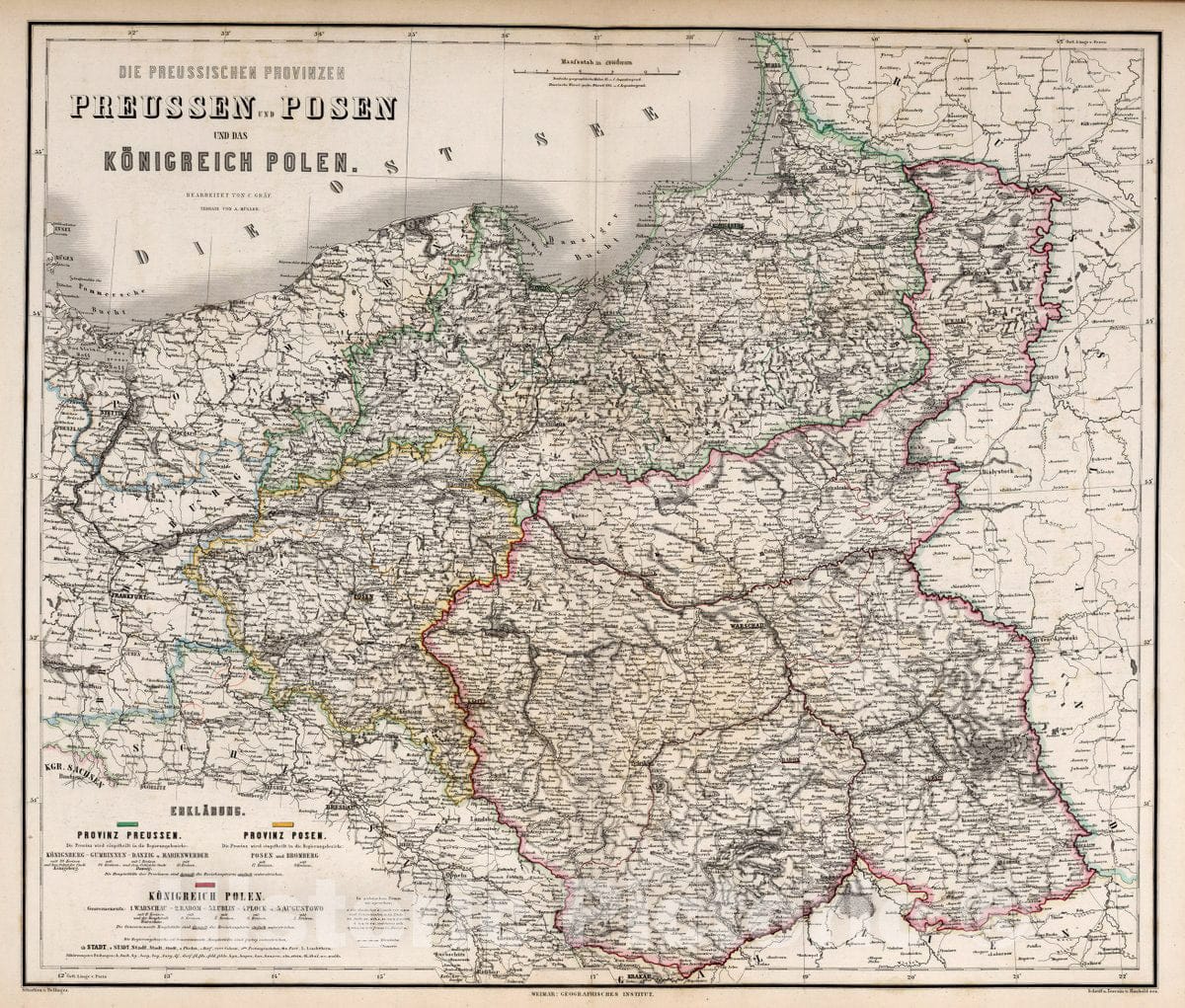 Historic Map : Poland, Warsaw Region (Poland) Die Preussischen Provinzen Preussen und Posen, und das Konigreiche Polen, 1866 Atlas , Vintage Wall Art