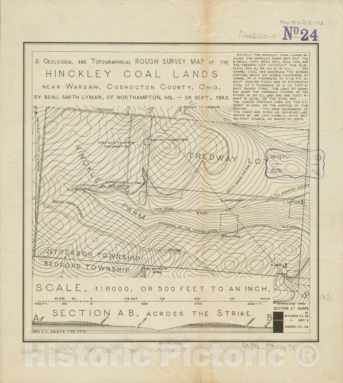 A geological and topographical rough survey map of the Hinckley Coal Lands near Warsaw, Coshocton County, Ohio