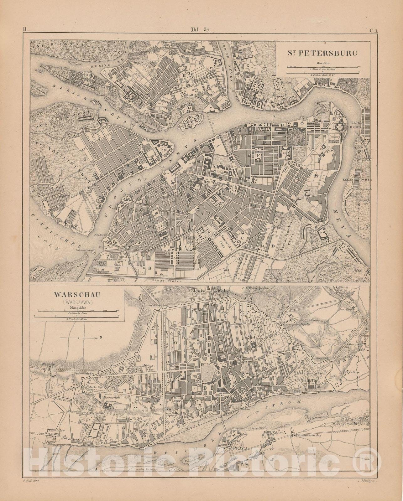 Historic Map : Europe, Saint Petersburg & Warsaw , Vintage Wall Art