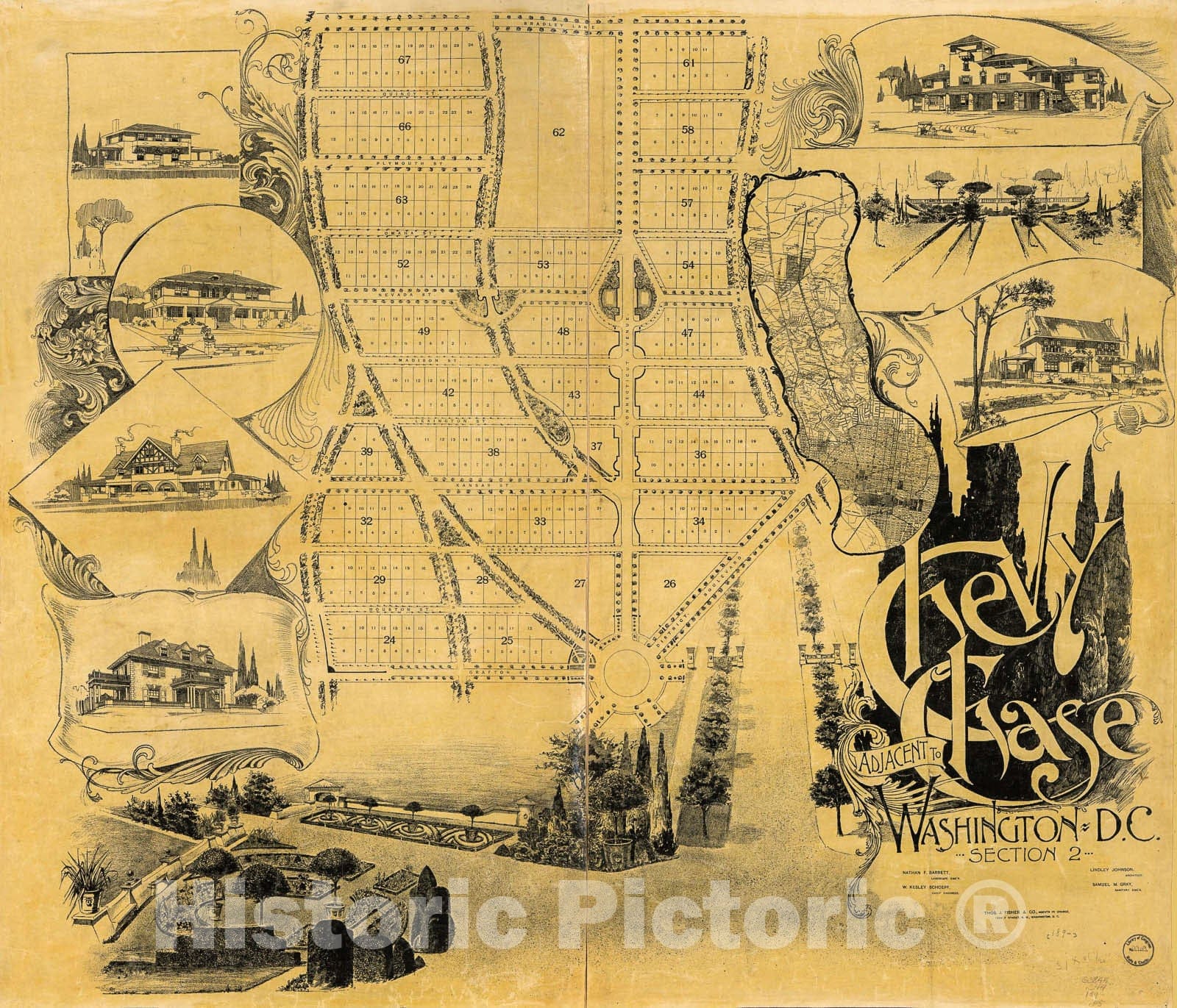 Historic 1890 Map - Chevy Chase, Section 2, Adjacent to Washington D.C.