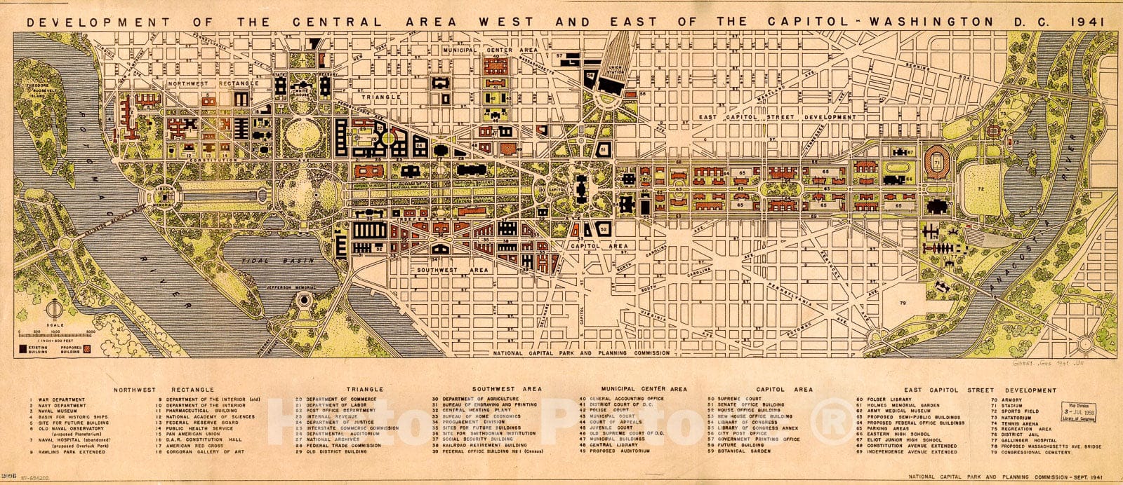 • .Historic 1941 Map - Development of The Central Area west and East of The Capitol-Washington D.C. 1941