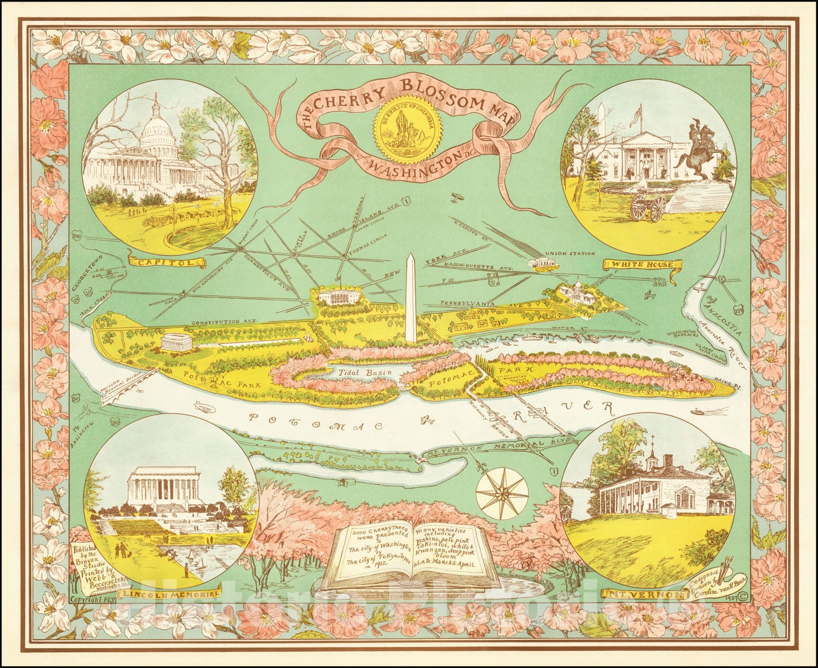 Historic Map : The Cherry Blossom Map of Washington D.C., 1937, Caroline Van H. Bean, Vintage Wall Art