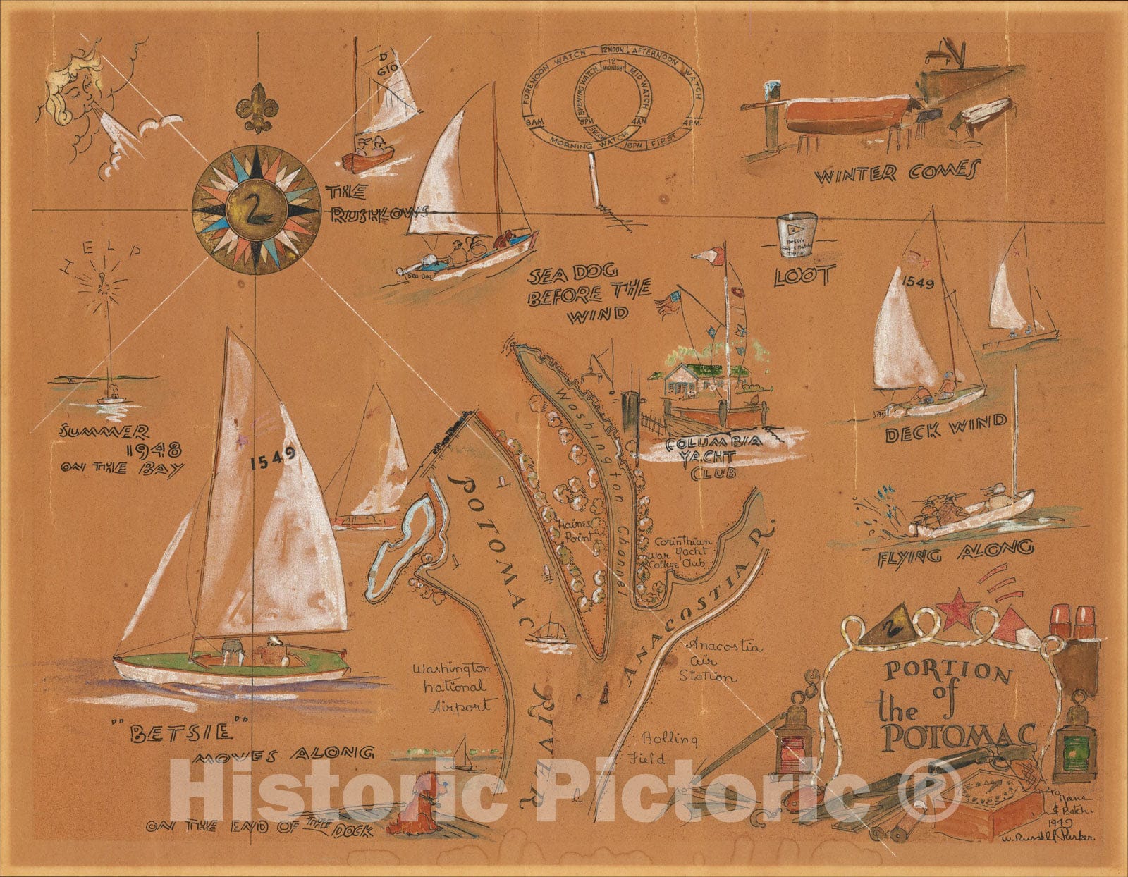 Historic Map : [Hand Drawn Map of the Washington D.C. Area] Portion of the Potomac, 1949, , Vintage Wall Art