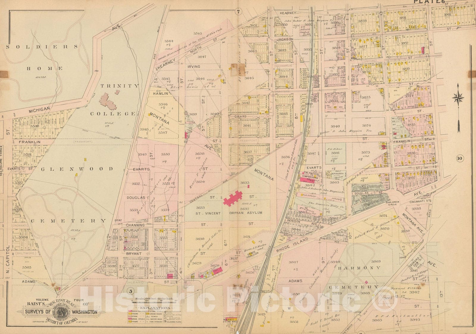 • .Historic Map : Atlas of Washington D.C. Volume 4 (NE, SE), Washington 1907 Plate 006 , Vintage Wall Art