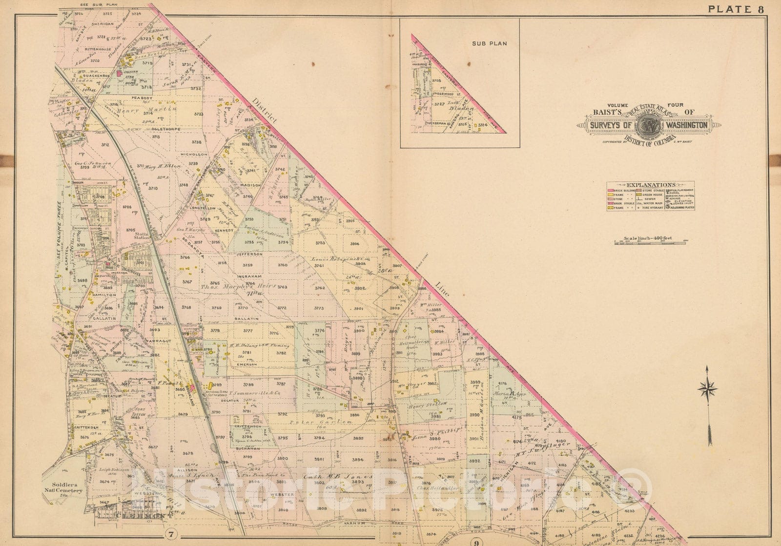Historic Map : Atlas of Washington D.C. Volume 4 (NE, SE), Washington 1907 Plate 008 , Vintage Wall Art