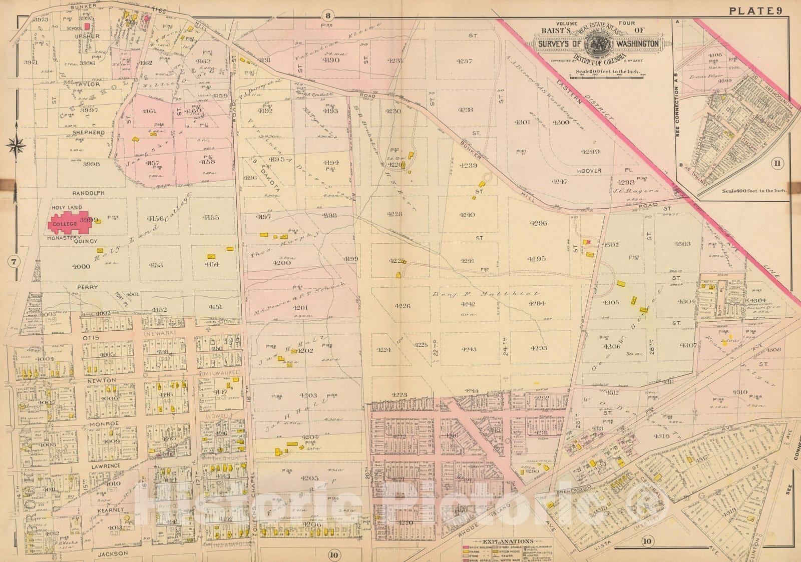 Historic Map : Atlas of Washington D.C. Volume 4 (NE, SE), Washington 1907 Plate 009 , Vintage Wall Art