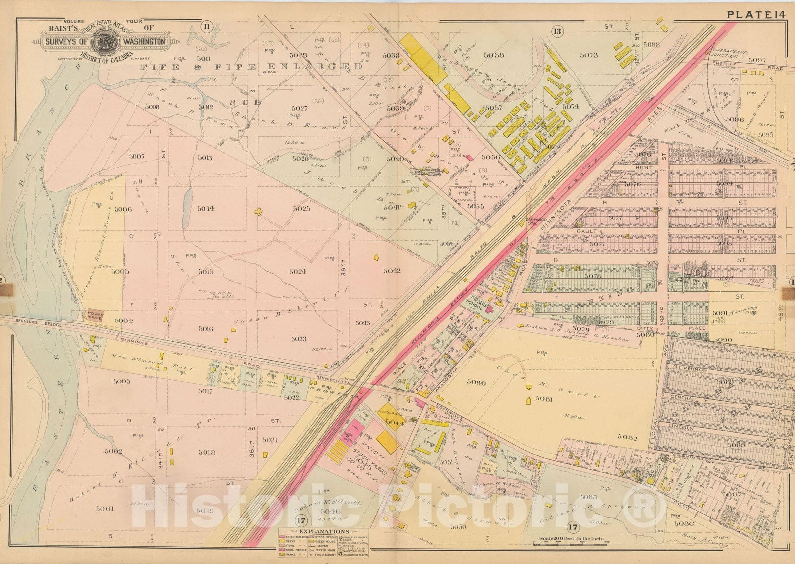 Historic Map : Atlas of Washington D.C. Volume 4 (NE, SE), Washington 1907 Plate 014 , Vintage Wall Art