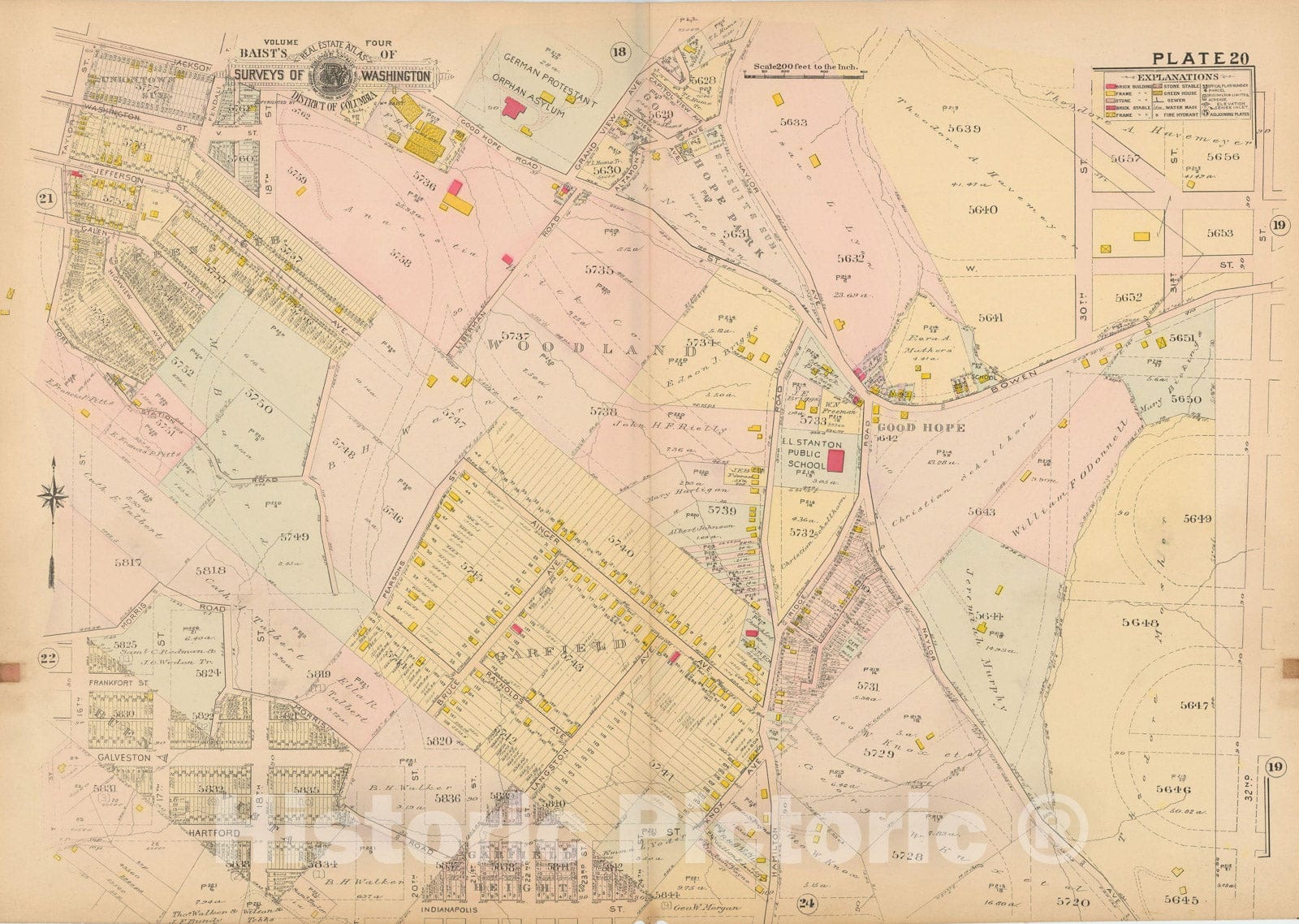 Historic Map : Atlas of Washington D.C. Volume 4 (NE, SE), Washington 1907 Plate 020 , Vintage Wall Art