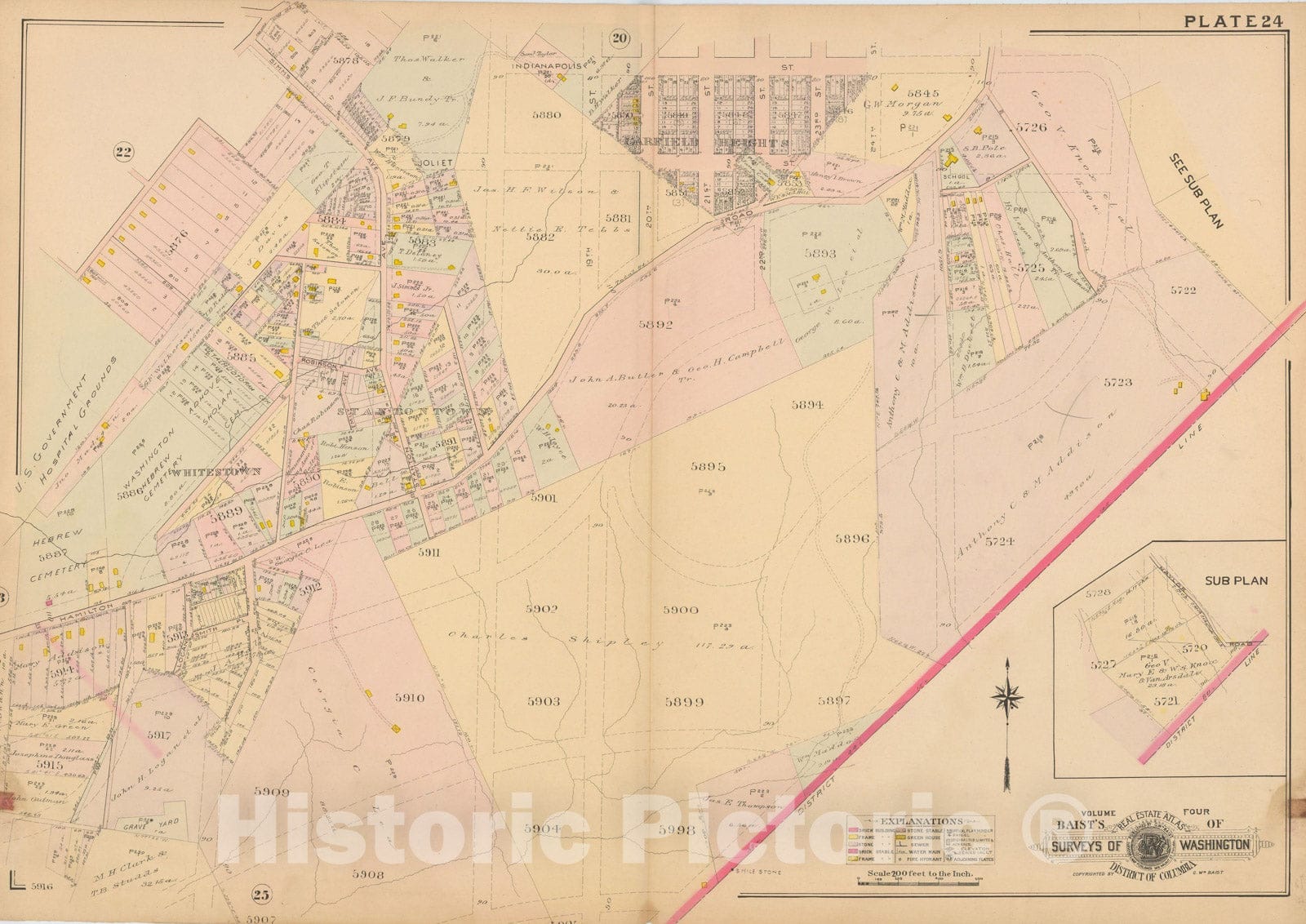 Historic Map : Atlas of Washington D.C. Volume 4 (NE, SE), Washington 1907 Plate 024 , Vintage Wall Art