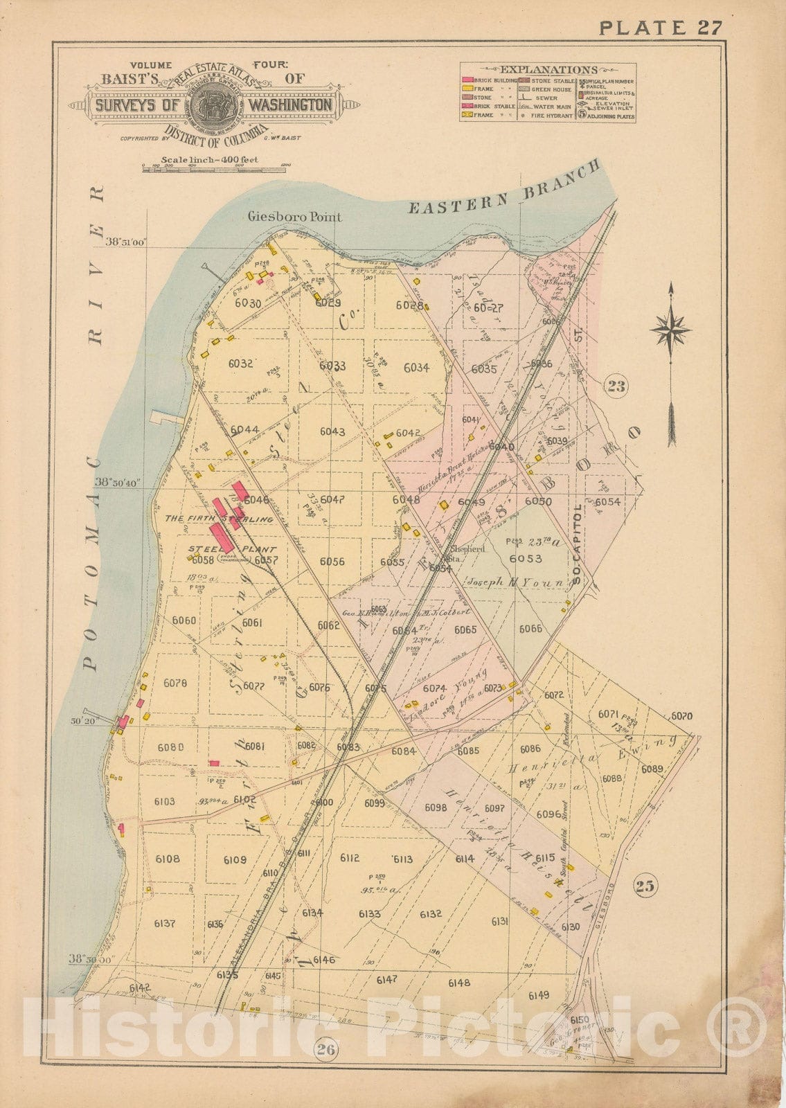 Historic Map : Atlas of Washington D.C. Volume 4 (NE, SE), Washington 1907 Plate 027 , Vintage Wall Art