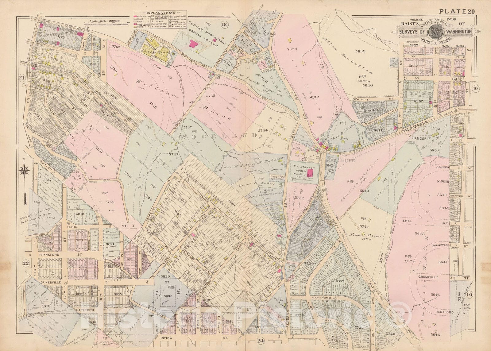Historic Map : Atlas of Washington D.C. Volume 4 (NE, SE), Washington 1927 Plate 020 , Vintage Wall Art