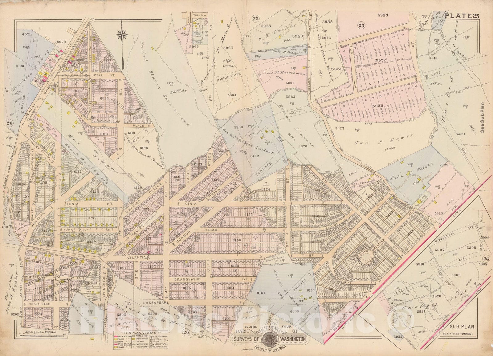 Historic Map : Atlas of Washington D.C. Volume 4 (NE, SE), Washington 1927 Plate 025 , Vintage Wall Art