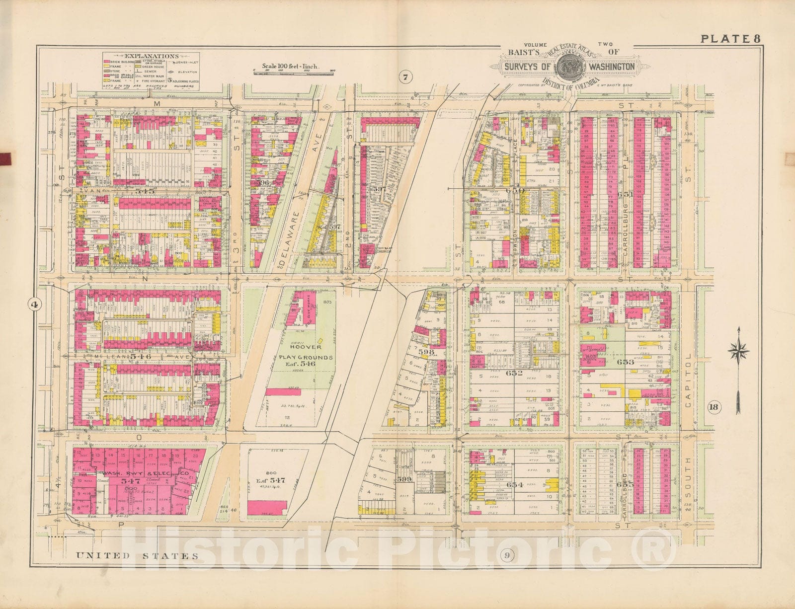 Historic Map : Atlas of Washington D.C. Volume 2 (NE, SE, SW), Washington 1928 Plate 008 , Vintage Wall Art