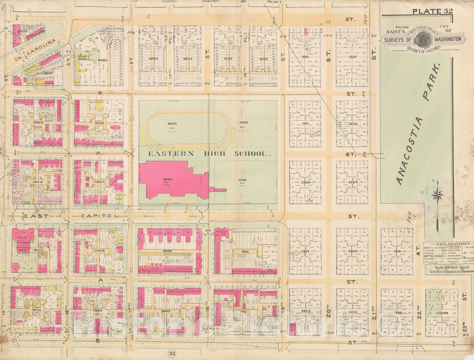 Historic Map : Atlas of Washington D.C. Volume 2 (NE, SE, SW), Washington 1928 Plate 032 , Vintage Wall Art
