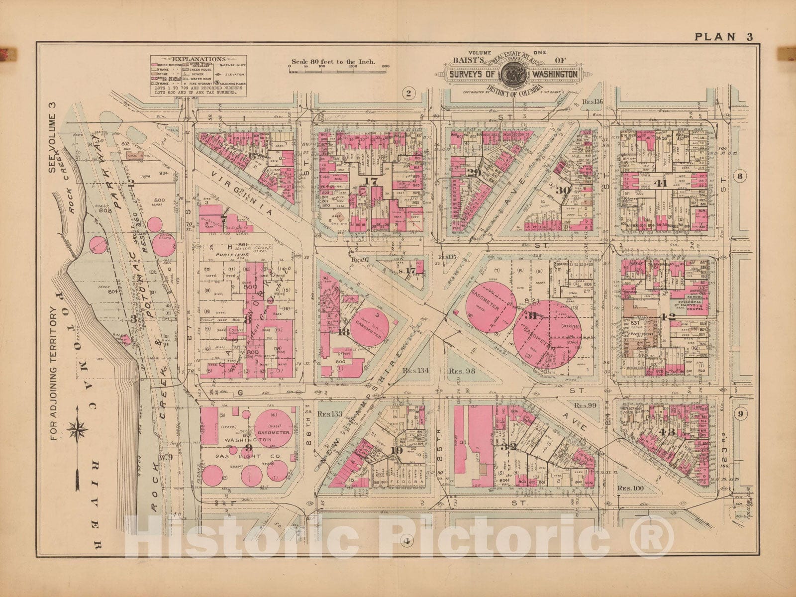 Historic Map : Atlas of Washington D.C. Volume 1 (Inner NW), Washington 1939 Plate 003 , Vintage Wall Art
