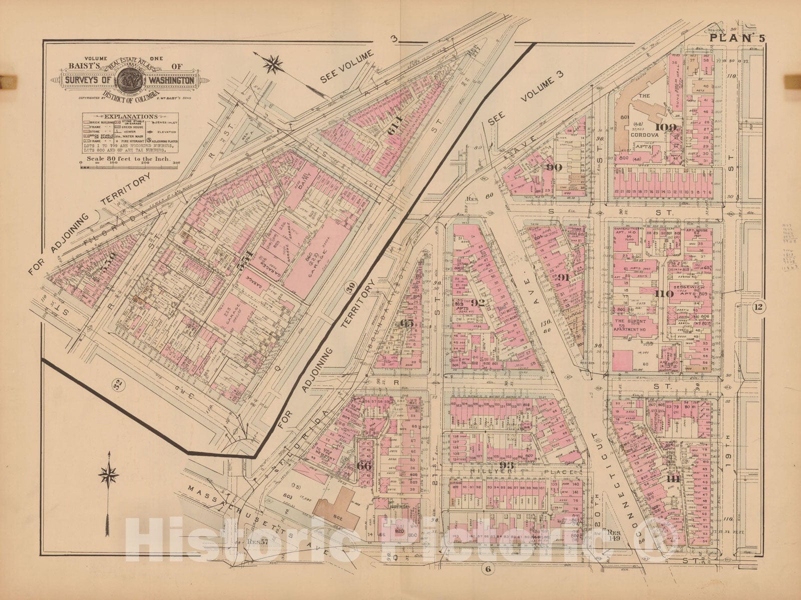 Historic Map : Atlas of Washington D.C. Volume 1 (Inner NW), Washington 1939 Plate 005 , Vintage Wall Art