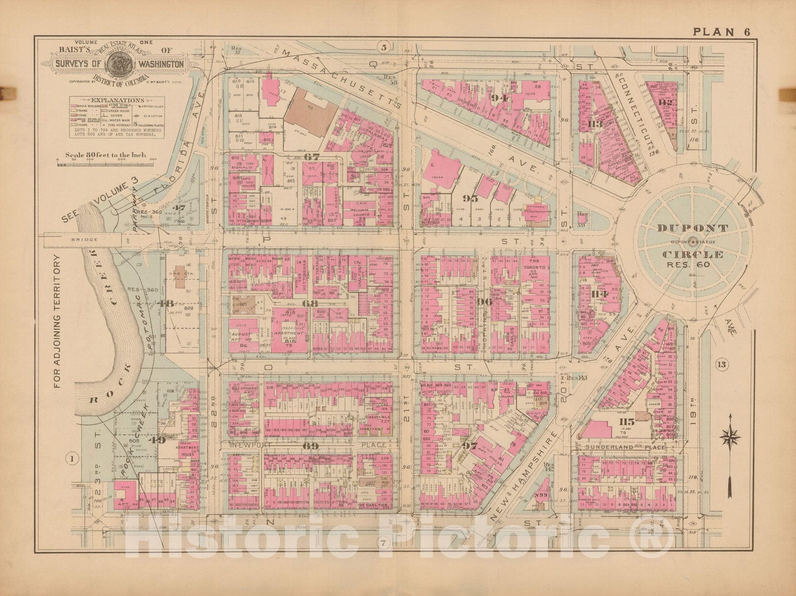 • .Historic Map : Atlas of Washington D.C. Volume 1 (Inner NW), Washington 1939 Plate 006 , Vintage Wall Art