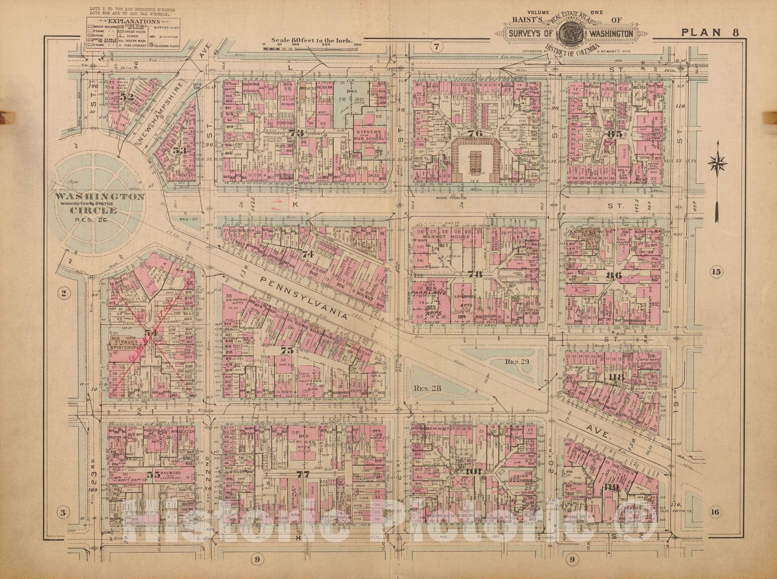 Historic Map : Atlas of Washington D.C. Volume 1 (Inner NW), Washington 1939 Plate 008 , Vintage Wall Art